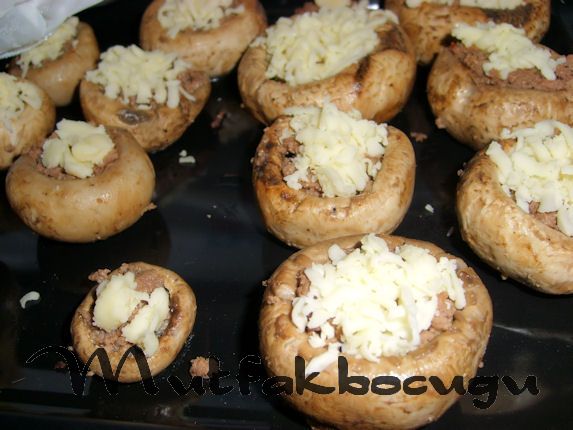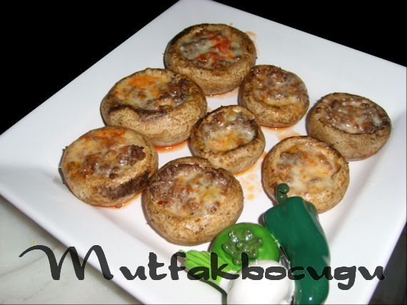 - Mantarlar soğurken kıymalı harcı hazIrlayın. Teflon bir tavaya çok az bir sıvıyağ koyun. Kıymayı yağla kavurun. Yeşil biberleri ince ince doğrayıp kavurduğunuz kıymaya karıştırın. Biberler ölene kadar kavurun. En son tuzu ve baharatları atıp ocağın altını kapatın. Kıymaları mantarların içine doldurun.