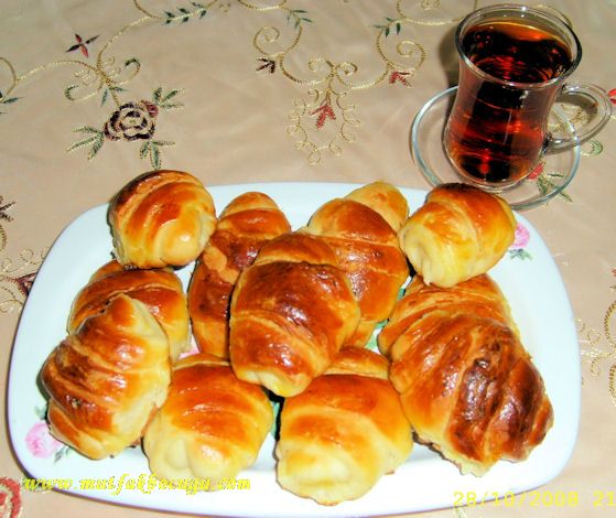 Yapımı ilk anda zor gibi geliyor ama öyle olmadığını deneyince anlıyorsunuz.Bu poğaçanın tarifini birçok sitede bulabilirsiniz.Benim ilham kaynağım mutfakguncesi.blogspot.com oldu.Ben ayrıntılı olarak yapılışının resmini çekmedim daha doğrusu aceleden çekemedim.Ancak yapılış aşamalarını mutfak güncesinde bulabilirsiniz.