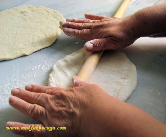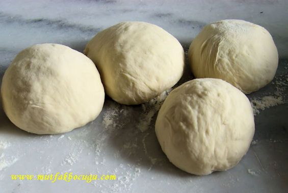 Mayayı çok az ılık suda eritin.Unu hamur yapacağınız derin bir kaba alın.Ortasını havuz gibi açın.Göz kararı tuz atın.Erittiğiniz mayayı unun ortasına yavaş yavaş dökün.Unla karıştırıp su ekleyip yoğurun.Yumuşak bir kıvam elde edin.Hamurun üzerini örtün, mayalanmaya bırakın.Hamur iyice kabarınca yumruktan biraz küçük bezelere ayırın.