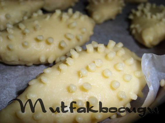 - Bütün hamura aynı işlemi uygulayın. Birleştirdiğiniz kısımı tepsinin tabanına gelecek şekilde dizin. 180C fırında üzeri iyice kızarana kadar pişirin.